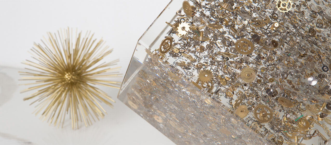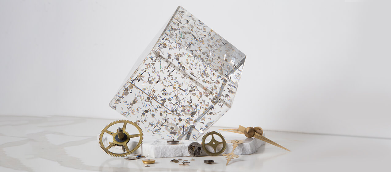 Шестеренки, барабаны, колеса, пружины, ходовые колеса, трибы, мосты и стрелки – каждая деталь часового механизма рассказывает свою удивительную историю. Мастера Berd Vaye заботливо восстанавливают часовые элементы, полируют их, а затем скрупулезно создают из них неповторимые композиции и заключают в форму из благородной, кристально чистой и ударопрочной смолы Lucite®.