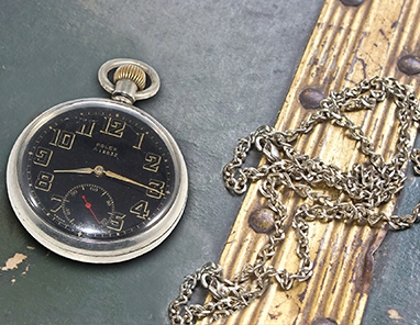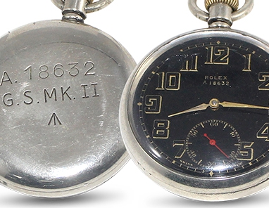 На величественном черном циферблате и на крышке часов по-прежнему можно увидеть армейский опознавательный номер: Rolex A 18632. Эти карманные часы с ручным заводом были изготовлены в Швейцарии, и по сей день арабские цифры на их циферблате сверкают золотым блеском.