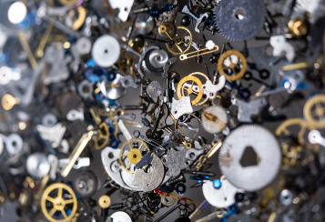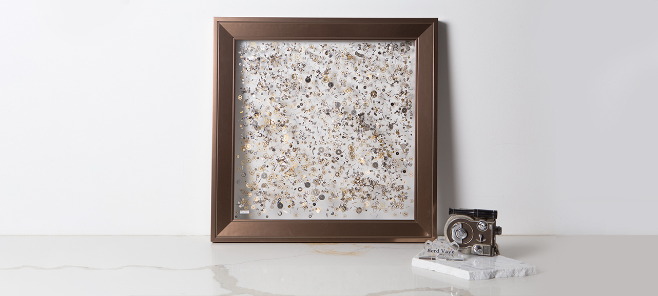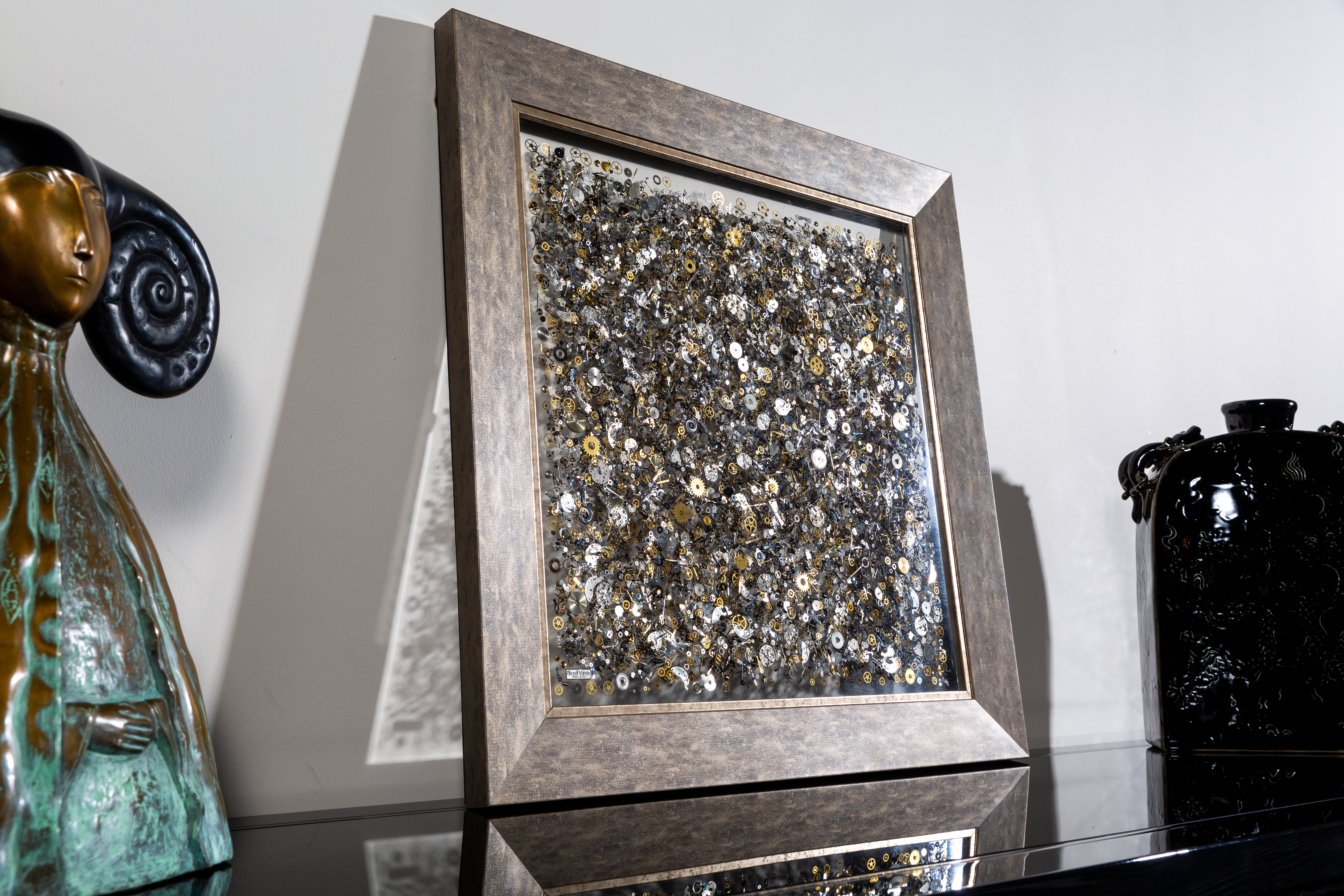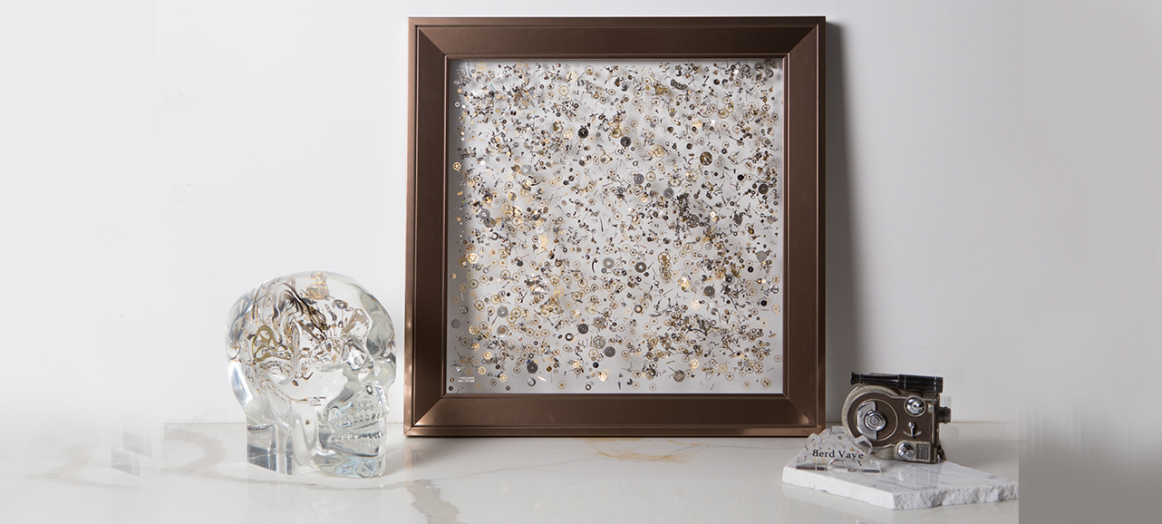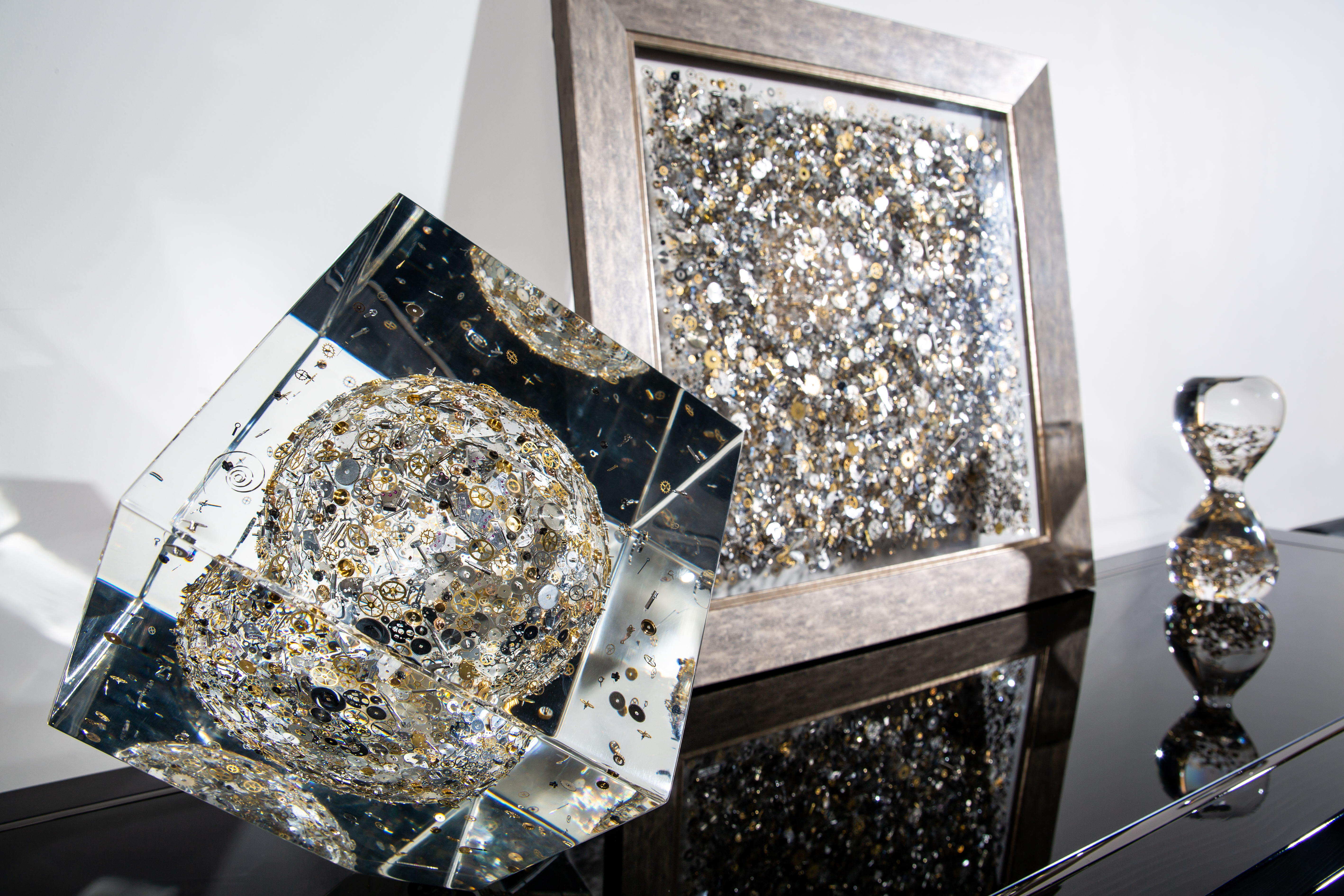 Скульптура создана для вдумчивого любования: лишь неторопливое ее изучение позволит по достоинству оценить всю замысловатость расположения застывших в Lucite® часовых деталей.